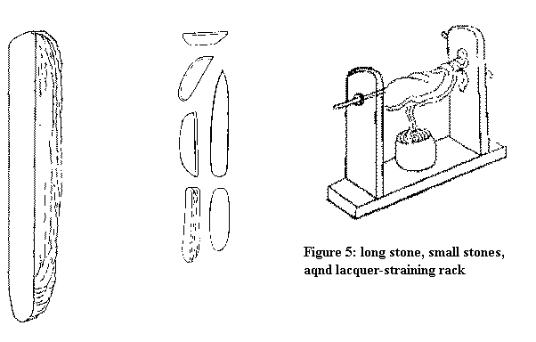all be at hand for use in rubbing sharp corners. Also these can be used to perfect the bridge, nut, ch'eng-lu,