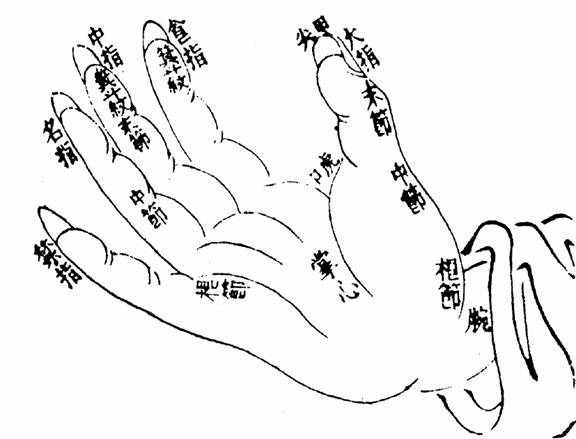 for parts of the hand for which we lack a precise English translation. One such term is hu-kou (lit. “tiger mouth” 虎口) which refers to the area