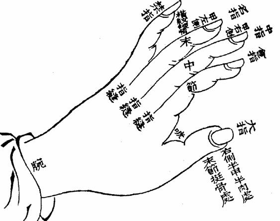 called the “forbidden finger” (禁指). At the last joint of all fingers, on the