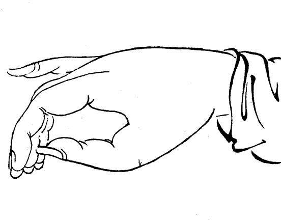 from the wrist or (for the former technique) from the last joint of the (ring)