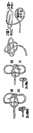 [1] “Ying-tou”, or “fly-head” is a term for the little bow-tie knot found at the end of the ch’in string that is run through the “yarn fasteners” and placed on the top of the Yueh-shan bridge. Presumably this is called a “fly-head” because the two bows look something like the large eyes of a fly. Of course, the bows are important, because otherwise how would the ch’in string be held at the bridge end?