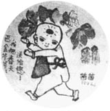 兴地准备了一样小礼物:她在盘子上画了一个胖娃娃,扛着一串长长的鲜花,旁边