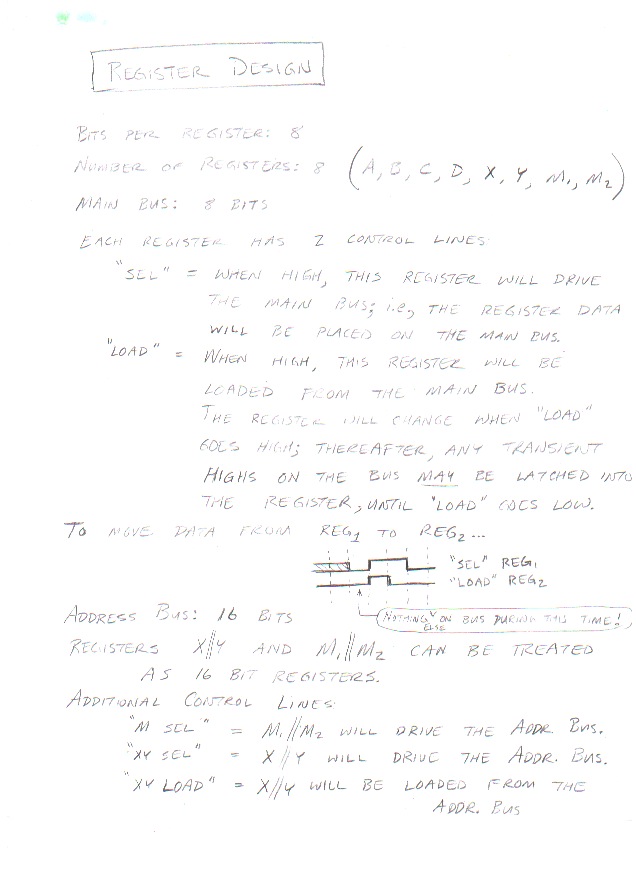 The control signals for the ALU and the registers must be driven by the control logic in the Sequencer Unit. We begin by showing what the exact timing for the control signals will be. (See "Inter-Cabinet-Cabling-1" below for a full list of the control lines.)
